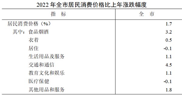 全年居民消費(fèi)價(jià)格比上年上漲1.7%。分類別看,食品煙酒、衣著、生活用品及服務(wù)、交通和通信、教育文化和娛樂、其他用品和服務(wù)等價(jià)格分別上漲3.2%、0.5%、1.1%、4.5%、1.1%、1.8%;居住、醫(yī)療保健價(jià)格均下降0.1%。