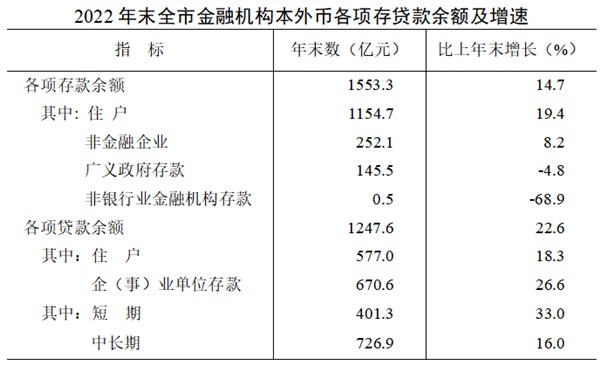 年末全市金融機(jī)構(gòu)本外幣各項(xiàng)存款余額1553.3億元,比上年增長14.7%,比年初增加198.5億元。其中,住戶存款余額1154.7億元,增長19.4%;非金融企業(yè)存款余額252.1億元,增長8.2%。金融機(jī)構(gòu)本外幣各項(xiàng)貸款余額1247.6億元,增長22.6%,比年初增加230.1億元。其中,短期貸款余額401.3億元,增長33%,中長期貸款余額726.9億元,增長16%。年末全市金融機(jī)構(gòu)外幣存款余額4287萬美元,比上年增長0.9%,比年初增加37萬美元;外幣貸款余額2673萬美元,比上年下降18.8%,比年初減少621萬美元。