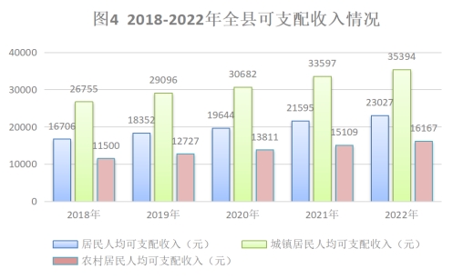 全縣居民人均可支配收入23027元,比上年增長6.6%。其中:城鎮(zhèn)常住居民人均可支配收入35394元,增長5.4%;農(nóng)村常住居民人均可支配收入16167元,增長7.0%。