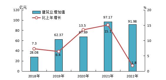 全年建筑業(yè)實(shí)現(xiàn)增加值91.98億元,比上年增長(zhǎng)1.8%。具有資質(zhì)等級(jí)的總承包和專(zhuān)業(yè)承包建筑業(yè)企業(yè)完成建筑業(yè)總產(chǎn)值185.38億元,增長(zhǎng)13.8%。