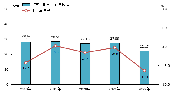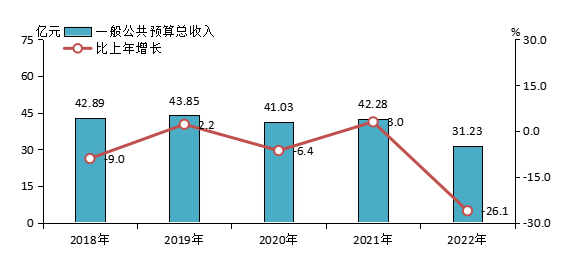 全年一般公共預(yù)算總收入31.23億元,比上年下降26.1%,其中,地方一般公共預(yù)算收入22.17億元,下降19.1%;一般公共預(yù)算支出38.87億元,比上年增長(zhǎng)10.9%。