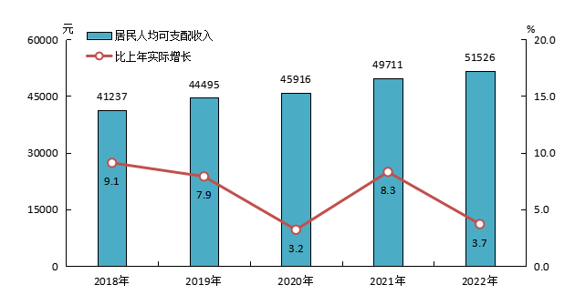 圖11:2018-2022年居民人均可支配收入及其增長(zhǎng)速度