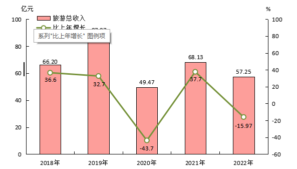 圖14:2018-2022旅游總收入及增長(zhǎng)率