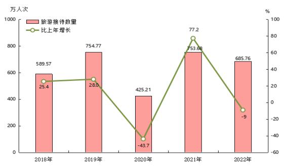 圖13:2018-2022年旅游接待數(shù)量及增長(zhǎng)率