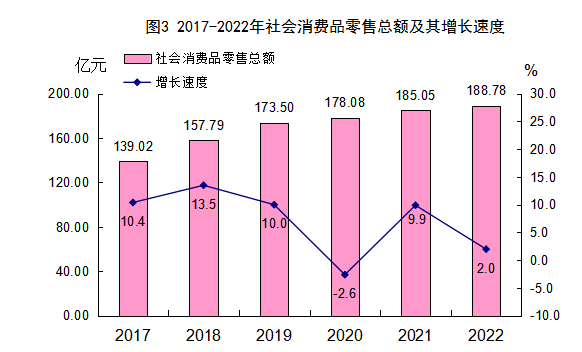 全年社會(huì)消費(fèi)品零售總額188.78億元,比上年增長(zhǎng)2.0%。其中,限額以上消費(fèi)品零售額33.96億元,增長(zhǎng)5.8%;限額以下消費(fèi)品零售額154.82億元,增長(zhǎng)1.2%。在限額以上批發(fā)和零售企業(yè)商品零售額(不含市局反饋企業(yè)數(shù)據(jù))中,石油及其制品類增長(zhǎng)2.8%,中西藥品類增長(zhǎng)28.1%,糧油食品類下降6.4%,服裝鞋帽、紡織品類下降0.3%,日用品類增長(zhǎng)33.1%,家用電器和音像器材類下降14.9%,家具類增長(zhǎng)9.6%,汽車類下降34.9%。全縣限額以上企業(yè)通過互聯(lián)網(wǎng)實(shí)現(xiàn)商品零售額7.49億元,比上年增長(zhǎng)65.7%。