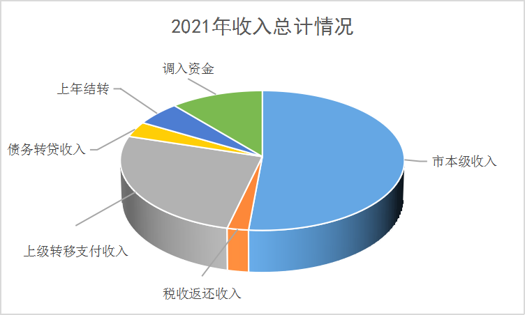 3.平衡情況。收入方面,市本級收入72.81億元(不含留抵退稅0.8億元),稅收返還收入3.26億元,上級轉(zhuǎn)移支付收入36.75億元,債務(wù)轉(zhuǎn)貸收入5.05億元,上年結(jié)轉(zhuǎn)7.78億元,調(diào)入資金15.82億元,收入總計141.47億元。支出方面,一般公共預(yù)算支出120.59億元,上解上級支出10.51億元,債務(wù)還本支出3.69億元,預(yù)算穩(wěn)定調(diào)節(jié)基金0.35億元,結(jié)轉(zhuǎn)下年支出6.33億元,支出總計141.47億元。收支品抵,全年收支實現(xiàn)平衡。