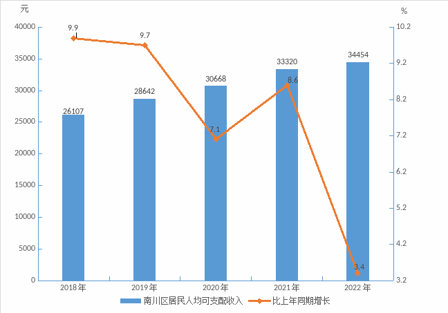 人均可支配收入 | 34454 | 3.4 | 43264 | 3.4 | 20284 | 5.6 |
