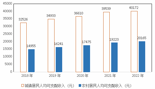 圖1近五年城鎮(zhèn)和農(nóng)村常住居民人均可支配收入