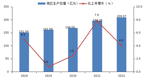 圖1 2018-2022年地區(qū)生產(chǎn)總值及其增長速度