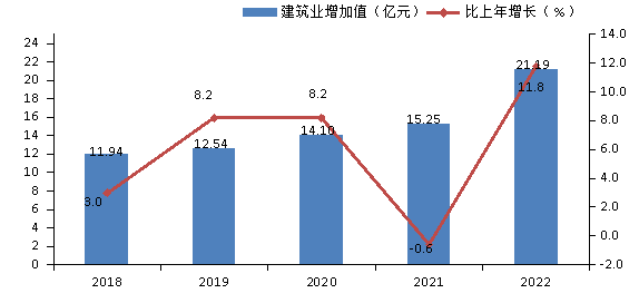 圖3 2018-2022年建筑業(yè)增加值及其增長速度