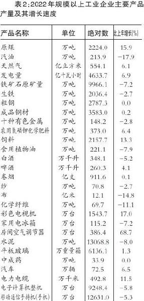 從主要產(chǎn)品產(chǎn)量看,原煤產(chǎn)量增長15.9%,發(fā)電量增長6.9%,天然氣增長6.1%,彩色電視機增長17.0%,飼料增長13.3%,電力電纜增長11.5%,汽車增長6.5%,農(nóng)用氮磷鉀化學(xué)肥料增長6.4%,啤酒增長4.1%,平板玻璃增長1.3%。全年規(guī)模以上工業(yè)企業(yè)產(chǎn)銷率為96.4%。