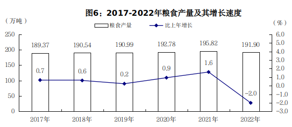 全年糧食總產(chǎn)量191.90萬噸,比上年下降2.0%。其中,小春糧食39.20萬噸,增長1.6%;大春糧食152.70萬噸,下降2.9%。經(jīng)濟作物中,油料產(chǎn)量22.59萬噸,增長4.2%;蔬菜及食用菌產(chǎn)量177.94萬噸,增長2.7%;茶葉產(chǎn)量1.36萬噸,增長6.2%;水果產(chǎn)量14.90萬噸,增長8.6%;中草藥材產(chǎn)量5.68萬噸,增長8.7%。