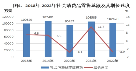 全年全市實(shí)現(xiàn)社會(huì)消費(fèi)品零售總額102478萬(wàn)元,比上年下降3.9%。
