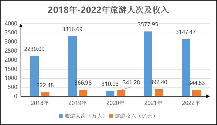 全年接待游客3147.47萬人次,實(shí)現(xiàn)旅游收入344.83億元,分別下降12%和12.1%。其中,接待國(guó)內(nèi)游客3146.85萬人次,實(shí)現(xiàn)國(guó)內(nèi)旅游收入344.75億元,分別下降12%和12.1%;接待入境游客0.62萬人次,實(shí)現(xiàn)旅游外匯收入116.46萬美元,下降57.63%。