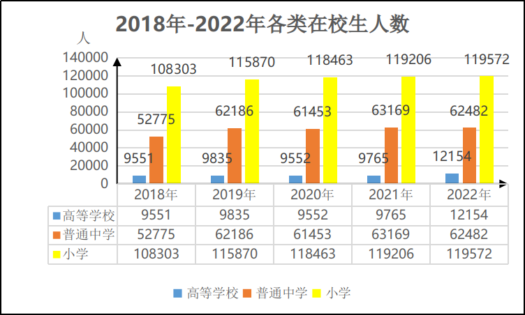 全州各級(jí)各類學(xué)校在校學(xué)生共239540人。其中:幼兒園在園幼兒38341人,小學(xué)在校學(xué)生119572人,初中在校學(xué)生45935人,高中在校學(xué)生16547人,特殊教育在校學(xué)生191人,中職全日制在校學(xué)生6800人,高校12154人(民院10245,職院1909人)。