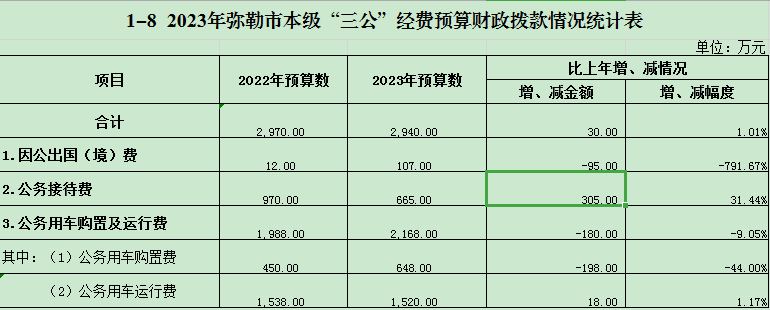 1-8 彌勒市市本級“三公”經費預算財政撥款情況統(tǒng)計表資料庫_工作報告_十四五