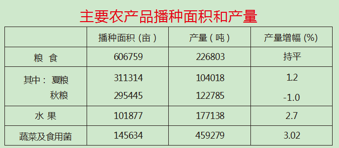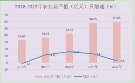 全年農(nóng)林牧漁服務(wù)業(yè)總產(chǎn)值完成59.65億元,同比增長2.8%。其中,農(nóng)業(yè)產(chǎn)值39.82億元,同比增長 2.0%;林業(yè)產(chǎn)值0.39億元,同比增長1.2%;牧業(yè)產(chǎn)值14.53億元,同比增長0.9%;漁業(yè)產(chǎn)值0.53億元,同比增長14.1%;農(nóng)林牧漁服務(wù)業(yè)產(chǎn)值4.37億元,同比增長17.1%。