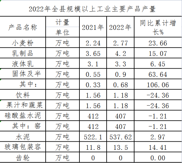 ?表二 ?2022年全縣規(guī)模以上工業(yè)主要產(chǎn)品產(chǎn)量