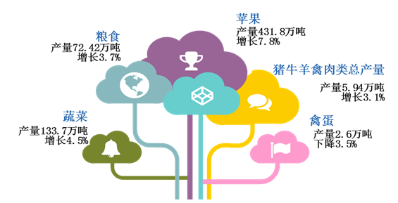 全市糧食播種面積14.7萬(wàn)公頃,增長(zhǎng)0.3%;糧食總產(chǎn)量72.42萬(wàn)噸,增長(zhǎng)3.7%。蔬菜種植面積2.6萬(wàn)公頃,增長(zhǎng)4.7%;蔬菜產(chǎn)量133.7萬(wàn)噸,增長(zhǎng)4.5%。蘋(píng)果面積22.1萬(wàn)公頃,與上年基本持平;蘋(píng)果產(chǎn)量431.8萬(wàn)噸,增長(zhǎng)7.8%。豬存欄43.3萬(wàn)頭、豬出欄60萬(wàn)頭,分別增長(zhǎng)2.9%和3.3%;羊存欄62.1萬(wàn)只、下降1.2%,羊出欄42.3萬(wàn)只、增長(zhǎng)0.1%;牛存欄6.5萬(wàn)頭,增長(zhǎng)1.0%;牛出欄2.6萬(wàn)頭,下降0.7%;生牛奶產(chǎn)量3291噸,增長(zhǎng)5.3%;禽蛋產(chǎn)量2.6萬(wàn)噸,下降3.5%;豬牛羊禽肉類(lèi)總產(chǎn)量5.94萬(wàn)噸,增長(zhǎng)3.1%。