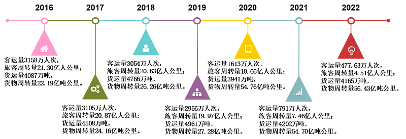 2016-2022年客貨運(yùn)量及周轉(zhuǎn)量