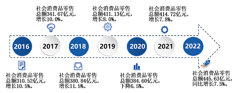 2016-2022年社會(huì)消費(fèi)品零售總額
