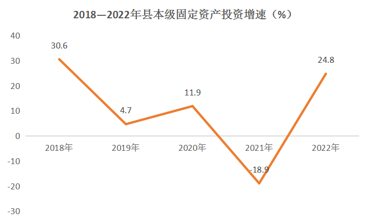 2022年,縣本級完成固定資產(chǎn)投資55.72億元,較上年增長24.8%。其中,第一產(chǎn)業(yè)27.3億元,增長28.9%;第二產(chǎn)業(yè)1億元,下降54.3%;第三產(chǎn)業(yè)27.4億元,增長28.7%。全年施工項(xiàng)目共223個(gè),較上年下降8.6%。其中,新開工112個(gè),增長7.7%。本年新增固定資產(chǎn)41.53億元,較上年增長4.1%。