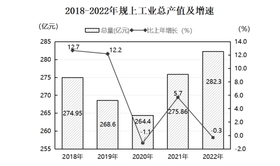 年末規(guī)模以上工業(yè)企業(yè)共127戶,完成工業(yè)總產(chǎn)值282.30億元,同比下降0.3%,其中區(qū)屬企業(yè)完成總產(chǎn)值201.53億元,同比下降3.8%;開發(fā)區(qū)企業(yè)完成總產(chǎn)值80.77億元,同比增長9.6%。規(guī)模以上工業(yè)增加值同比下降2.7%。