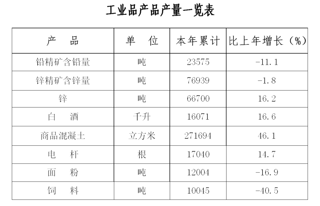 全縣12戶規(guī)模以上工業(yè)企業(yè)增加值增長16%。其中:輕工業(yè)完成工業(yè)增加值12.8億元,增長37.7%,重工業(yè)完成增加值15.7億元,增長2.6%。分行業(yè)看:有色金屬礦采選業(yè)總產(chǎn)值17.78億元,實(shí)現(xiàn)增加值12.04億元;農(nóng)副食品加工業(yè)總產(chǎn)值0.91億元,實(shí)現(xiàn)增加值0.07億元;飲料制造業(yè)總產(chǎn)值32.48億元,實(shí)現(xiàn)增加值12.75億元;非金屬礦物制造業(yè)總產(chǎn)值2.04億元,實(shí)現(xiàn)增加值0.45億元;有色金屬冶煉業(yè)總產(chǎn)值16.17億元,實(shí)現(xiàn)增加值3.18億元;其它行業(yè)總產(chǎn)值0.23億元,實(shí)現(xiàn)增加值0.01億元。