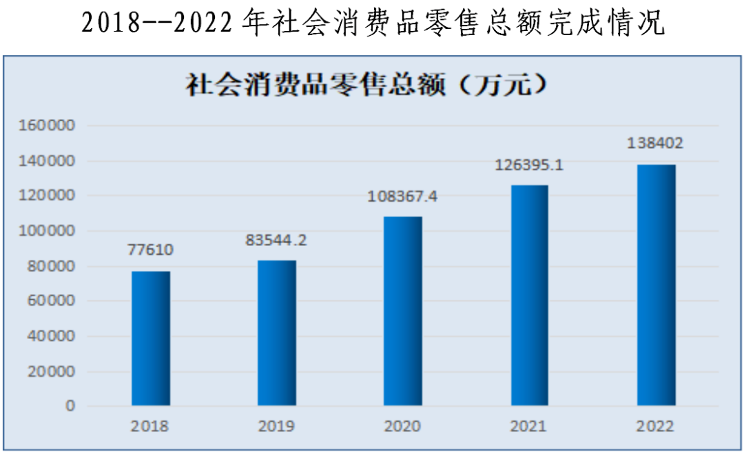 全年社會消費(fèi)品零售總額完成138402萬元,同比增長9.5%。工程資料_資料共享_十四五
