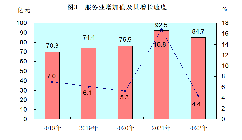 全年全縣服務(wù)業(yè)增加值84.7億元,按不變價格計算,比上年增長4.4%。其中,批發(fā)和零售業(yè)增加值14億元,增長15%;交通運輸、倉儲和郵政業(yè)增加值13.2億元,增長9.2%;住宿和餐飲業(yè)增加值1.9億元,增長5.5%;金融業(yè)增加值6.8億元,下降2.9%;房地產(chǎn)業(yè)增加值15.3億元,下降9.2%;營利性服務(wù)業(yè)增加值10.8億元,增長6.1%;非營利性服務(wù)業(yè)增加值21.6億元,增長9%。