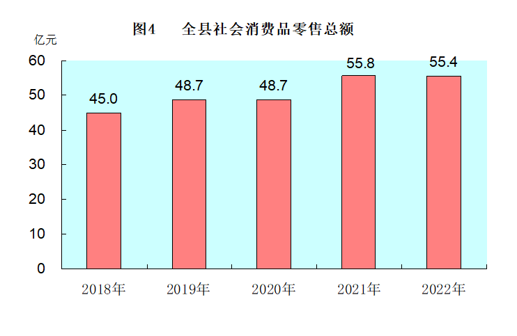 ?全年全縣社會消費品零售總額55.4億元,下降0.6%。按經(jīng)營地統(tǒng)計,城鎮(zhèn)消費品零售額38.8億元,下降0.5%;鄉(xiāng)村消費品零售額16.6億元,下降0.8%。