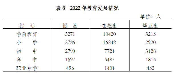 年末全縣共有幼兒園72所,小學(xué)67所,普通初中23所,普通高中4所,高職中學(xué)2所,特殊教育學(xué)校1所。全縣共有各級各類在校學(xué)生41359人,比上年減少588人;招生11041人,比上年減少36人;畢業(yè)生11532人,比上年增加676人。小學(xué)學(xué)齡兒童入學(xué)率100%;小學(xué)和初中升學(xué)率均達100%;高中毛入學(xué)率98.1%。
