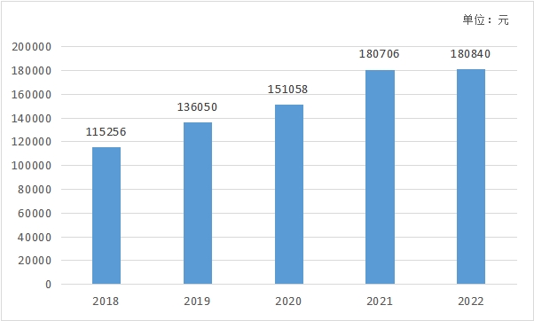 圖2 2018-2022年全區(qū)人均現(xiàn)價(jià)GDP