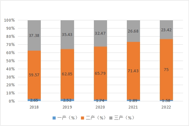 圖4 2018-2022年全區(qū)三次產(chǎn)業(yè)結(jié)構(gòu)比