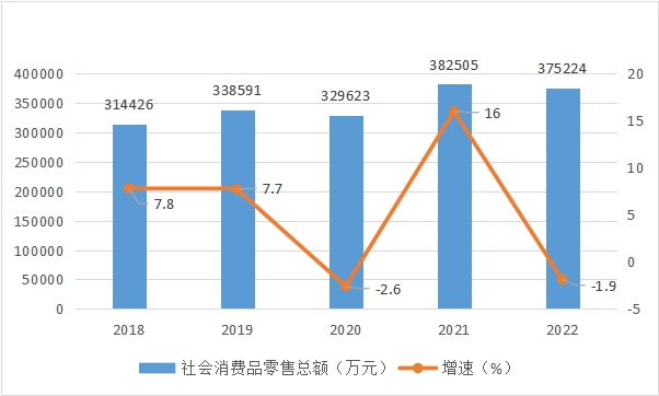 圖 2018-2022年社會(huì)消費(fèi)品零售總額及其增長速度