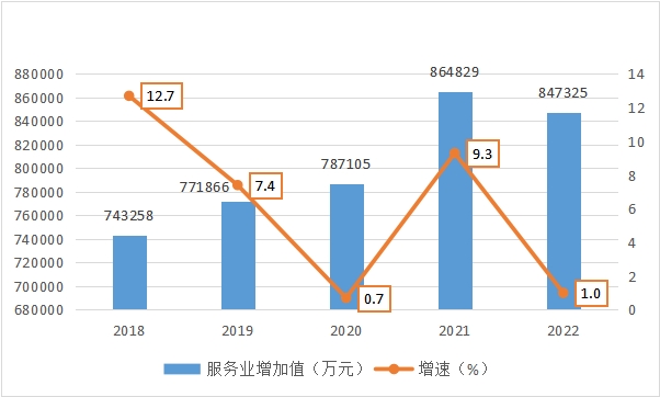 圖 2018-2022年全區(qū)服務(wù)業(yè)增加值及其增長速度