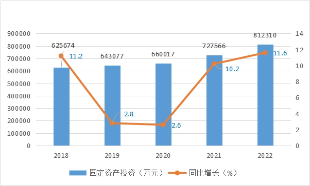 圖 2018-2022年區(qū)固定資產(chǎn)投資及增速