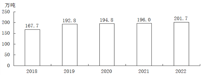 圖3 2018-2022年全市規(guī)模以上原煤產(chǎn)量