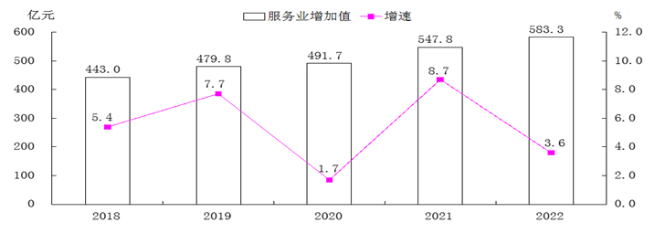 圖5 2018-2022年全市服務業(yè)增加值及其增長速度