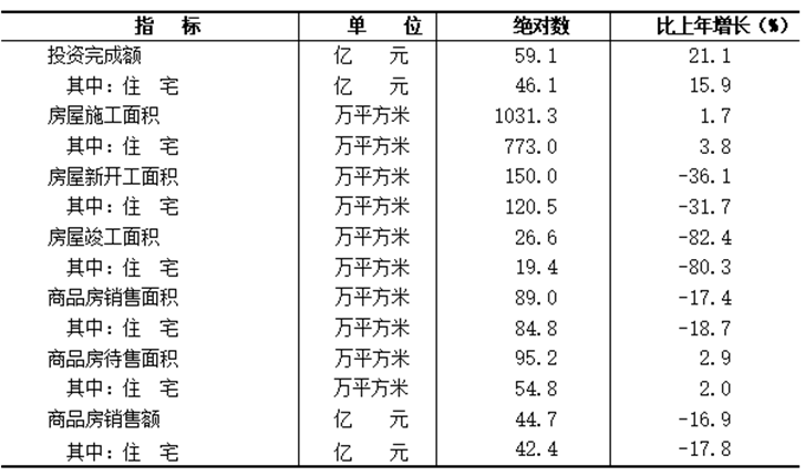 全年全市房地產(chǎn)開發(fā)投資59.1億元,增長21.1%。其中,住宅投資46.1億元,增長15.9%;商業(yè)營業(yè)用房投資5.7億元,增長73.4%。