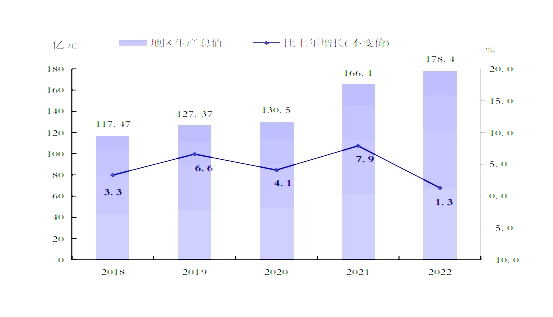 圖1 2018-2022年全縣生產(chǎn)總值及其增長(zhǎng)速度大牛工程師