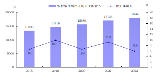 圖6 ?2018-2022年農(nóng)村常住居民人均可支配收入及其增長(zhǎng)速度文庫(kù)_模版下載_報(bào)告模板
