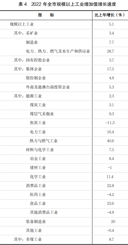 從主導(dǎo)行業(yè)看,煤炭工業(yè)增長(zhǎng)3.1%;焦炭工業(yè)下降11.3%;化學(xué)工業(yè)增長(zhǎng)11.4%;食品工業(yè)增長(zhǎng)23.6%(其中,酒的制造增長(zhǎng)24.8%);冶金工業(yè)增長(zhǎng)8.4%;電力工業(yè)增長(zhǎng)16.4%;熱力與燃?xì)夤I(yè)增長(zhǎng)40.6%?!?span style="display:none">2022年山西省呂梁市國(guó)民經(jīng)濟(jì)和社會(huì)發(fā)展統(tǒng)計(jì)公報(bào)