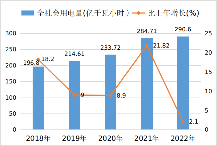 圖4 2018-2022年全市全社會(huì)用電量