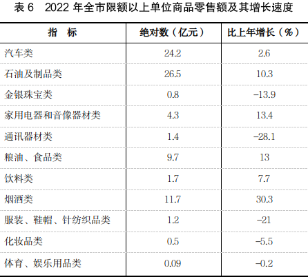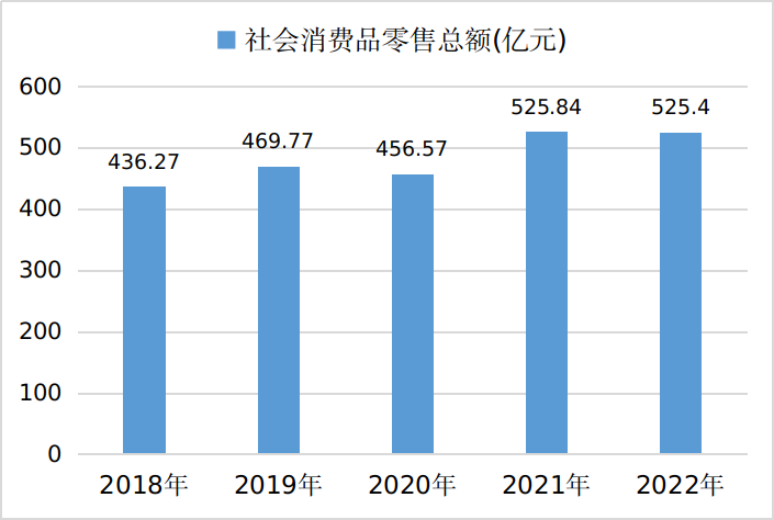 圖6 2018-2022年全市社會(huì)消費(fèi)品零售總額
