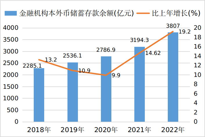 圖9 2018-2022年全市金融機(jī)構(gòu)本外幣儲(chǔ)蓄存款余額及其增長(zhǎng)速度