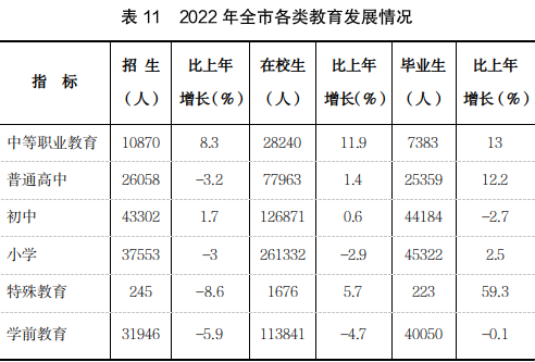 年末全市共有幼兒園762所,小學(xué)385所,普通初中190所,普通高中44所,中等職業(yè)教育學(xué)校30所。
