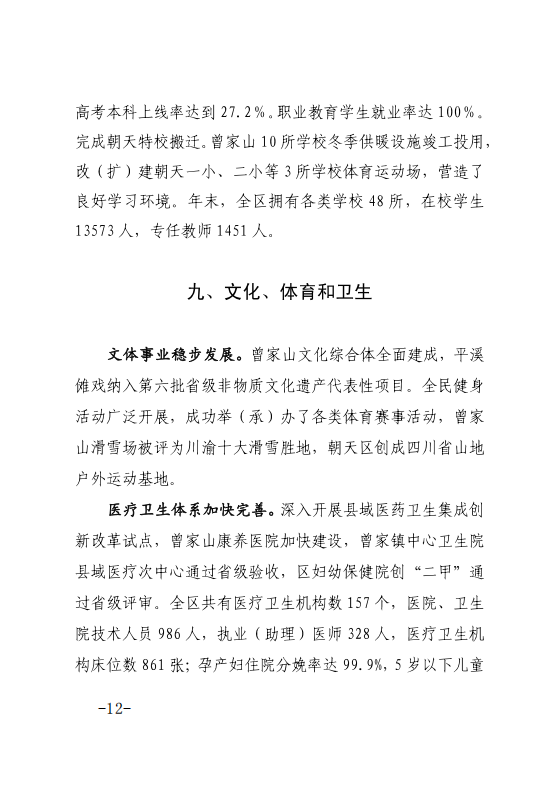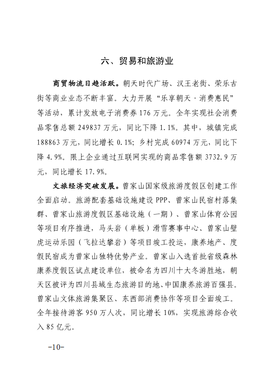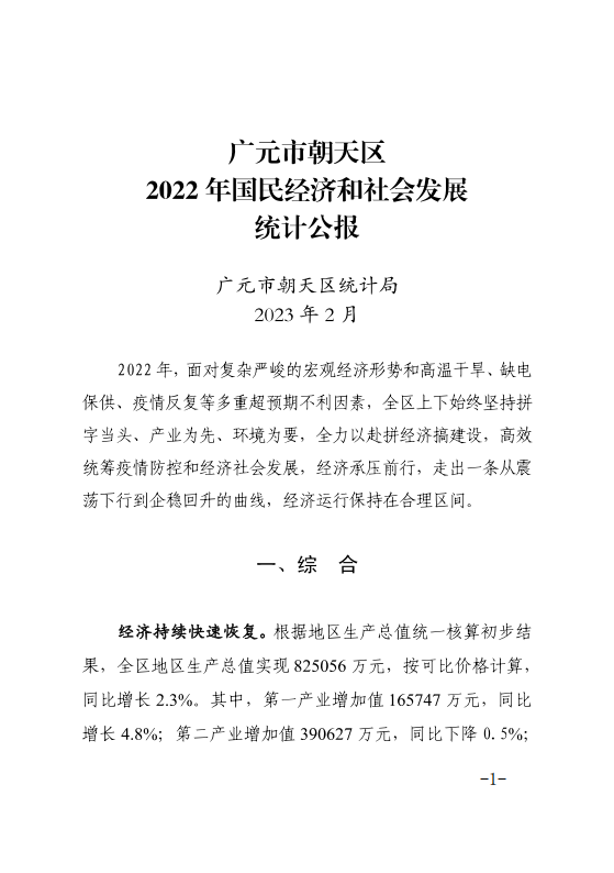 2022年廣元市朝天區(qū)人民政府國民經(jīng)濟和社會發(fā)展統(tǒng)計公報(2023年更新)