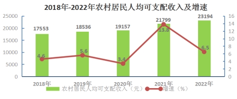 農村居民人均可支配收入23194元,增長6.5%。