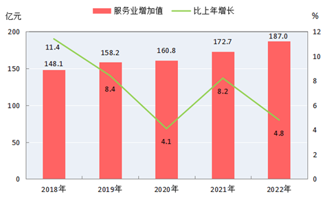 圖6 2018-2022年服務(wù)業(yè)增加值及其增長速度
